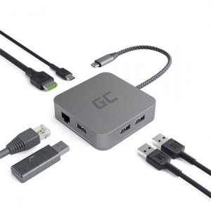 Green Cell USB-C HUB 6v1 (USB 3.0 HDMI Ethernet USB-C) adaptér pro Apple MacBook, Dell XPS, Asus ZenBook a další Ještě více možností s adaptérem GC HUB2.