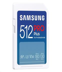 Samsung PRO Plus SDXC 512 GB; Rychlá paměťová karta formátu SDXC pro profesionální použití v dronech, akčních kamerách, 360° kamerách či tabletech nabízí kapacitu 512 GB .