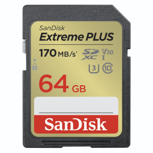 SanDisk SDXC Extreme Plus, 64 GBOdolné provedení, špičkové rychlosti a široká kompatibilita.