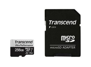 Transcend 256GB Ultra Performance microSDXC 340S UHS-I U3 V30 A2 3D TLC (Class 10) paměťová karta (s adaptérem), 160MB/s R, 125MB/s W