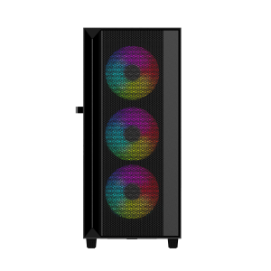Vysokovýkonné šasi typu mid tower s výrazným dizajnom predného panela RGB, ktorý poskytuje výkonný a dynamický vzhľad a dojem.