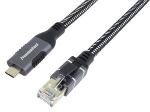 Kabel s integrovaným adaptérem USB-C na LAN RJ45 Ethernet 10/100/1000 MBIT, Fast Ethernet kabel umožní připojit počítač s USB-C portem do sítě ethernet RJ-45.