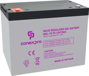 Gelová baterie, kapacita 75 Ah, napětí 12 V. Široká škála využití, životnost 10 až 12 let, odolnost vůči vibracím, korozi, opotřebení a hlubokému vybíjení.