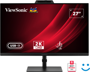 QHD rozlišení (2560 × 1440), USB 3.2 hub s 1 upstream a 4 downstream, HDMI, DisplayPort a VGA.
