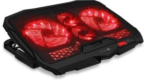Příjemně červeně podsvícená chladící podložka pro notebook.