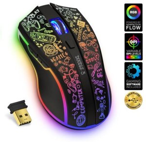 CONNECT IT DOODLE 3 bezdrátová herní myš, rainbow podsvícení, 4800Dpi, ČERNÁ DOODLE 3 --- Profesionální bezdrátová gamingová myš DOODLE 3 pro hráče počítačových her s Rainbow podsvícením těla i kolečka …