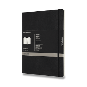 Zápisník s měkkou, ve hřbetu šitou vazbou v kartonových deskách, obepnutý pružnou páskou proti samovolnému otevírání.