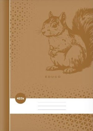 Školní sešit linkovaný/čistý ve formátu A4, v hnědé barvě, s motivem veverky, v deskách z křídového papíru.