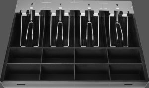 Plastový pořadač 4/8 kompaktních rozměrů pro samostatné použití, vhodný pro vložení do zásuvky kancelářského stolu.