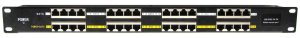 Stíněný panel integrující 16 pasivních POE injektorů vhodný pro napájení až šestnácti aktivních prvků v provedení do 19" racku.