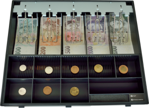 Základní parametry * Výměnný pořadač se 4 kovovými držáky bankovek * Vyjímatelný mincovník s 8 zásobníky mincí * Otvírání zásuvky: mechanicky klíčkem nebo elektronicky * Elektronická kontrola otevření …