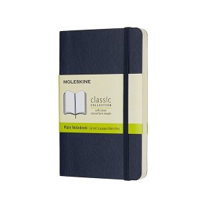 Zápisník s měkkou, ve hřbetu šitou vazbou v kartonových deskách, obepnutý pružnou páskou proti samovolnému otevírání.