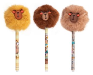 Gumovatelná pera s huňatým víčkem ve tvaru roztomilé kapybary, které je radost pohladit.