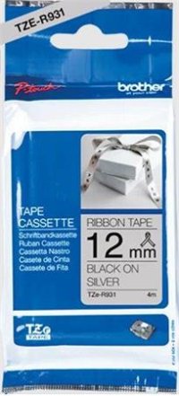 Originální laminovaná páska - bílé písmo na stříbrném podkladu. 12mm, 8m dlouhá
