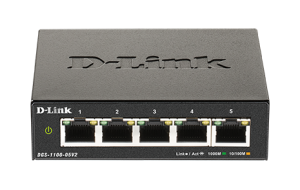 D-Link DGS-1100-05V2 5-port Gigabit Smart Managed switch D-Link DGS-1100-05V2 je 5-portový Gigabit Smart řízený přepínač v kompaktním kovovém provedení bez ventilátorů, pro položení na stůl, na poličku …