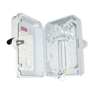 XtendLan ORSW-324-SCSB; Vodotěsný nástěnný plastový rozvaděč. 2+1 otvory pro vstupní/výstupní kabel, 24x výstupní porty pro napojení koncových vývodů.