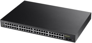 50-port Gigabit Web Smart switch: 48x Gigabit metal + 2x SFP, IPv6, 802.3az (Green), Easy set up wizard, PoE 802.3at (High Power, 30W) - Power budget 170W, 19" rackmount GbE porty 10/100/1000 Mbps Jednoduchá …
