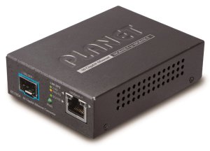 PLANET GTP-805A; PoE injektor IEEE 802.3at a optický konvertor Gigabit Ethernet, přepínač 10/100/1000Base-T - miniGBIC (SFP), full duplex, 1k MAC adres.