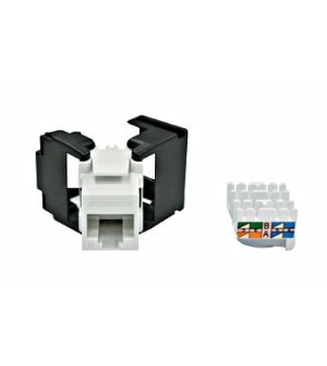 Keystone cat.6 bílý UTP (DUAL-mini) - horní zářez s krytkou - nestíněný keystone CAT.6 - barva bílá - zářezové pole typu DUAL (LSA i 110)