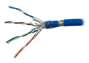 PLANET SFTP LS0H Cat6a 420 m; Kabel kategorie Cat6A , 500 MHz, 4pár, drát, SFTP, LS0H , každý pár je stíněný zvlášť folií + celkové opletení, balení 420 m , modrá barva, cena za balení.