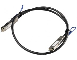 MikroTik XQ+DA0001; Patch kabel od MikroTiku je určený pro 100 Gbit propojení dvou zařízení (CCR2216 a CRS504) s QSFP28 slotem.