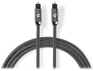 Nedis PROFIGOLD TosLink 3 m šedý; Digitální optický audio kabel lze použít k připojení Hi-Fi nebo komponent domácího kina, jako je stereo systém nebo přehrávač Blu-ray, k přijímači.