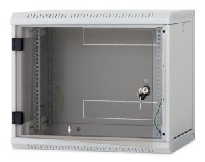 Datový rozvaděč, krytí IP65 – ideální do venkovního prostředí, 9U pozic, velikost 19", montáž na zeď nebo na stožár, z ocelových plechů, dvojice zámků s jedním klíčem.