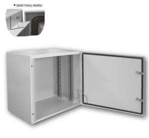 Datový rozvaděč, krytí IP65 – ideální do venkovního prostředí, 12U pozic, velikost 19", montáž na zeď nebo na stožár, z ocelových plechů, dvojice zámků s jedním klíčem.