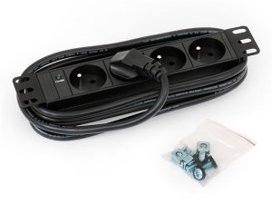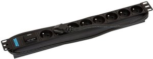 19" rozvodný panel Triton je vybavený 8 zásuvkami podle ČSN, 2metrovým kabelem s univerzální zástrčkou a varistorovou bleskojistkou.