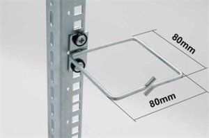 Kovové vyvazovací háčky pro lepší organizaci kabelů v rozvaděči.