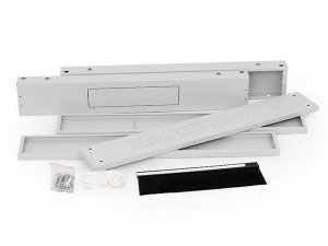 Konstrukci tvoří dva podélné boční díly, které odpovídají hloubce rozvaděče, a dva kryty (přední a zadní) s odpovídající šířkou.