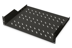 Fixed Shelf for DIGITUS 1000mm depth Cabinets, Vented, Black Color RAL 9005, up to 100kg, 483x720x50mm • strong sheet steel shelf with high load capacity • For fixing point fit the sites of main fr