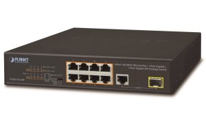 PLANET FGSD-1011HP; PoE přepínač s výkonem 120 W, 8x 10/100Base-TX s možností napájení dalších IEEE 802.3at zařízení, dva uplink 1000Base-X porty 1x TP a 1x SFP.