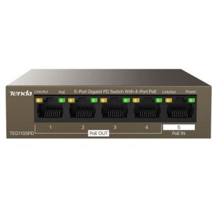 Switch Tenda TEG1105PD 5-ports Gigabit Standarty&protokoly: IEEE 802.3, IEEE 802.3u, IEEE 802.3x, IEEE 802.3ab, IEEE 802.3af, IEEE 802.3at Porty: 5x 10/100/1000 Mbps RJ45 auto-negace Port1 až Port4 …