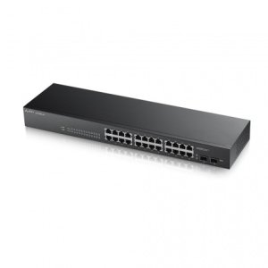 ZyXEL GS1900-24 26-port Gigabit Web Smart switch: 24x Gigabit metal + 2x SFP, IPv6, 802.3az (Green), Easy set up wizard, fanless, 19" rackmount OVERVIEW The ZyXEL GS1900 Series of 8/16/24/48-port GbE …
