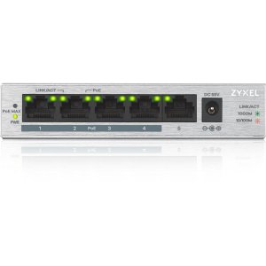 ZyXEL GS1005-HP Výkonný gigabitový nespravovaný switch s podporou PoE+ napájení pro snadné připojení zařízení jako jsou IP kamery, přístupové body nebo VoIP telefony.