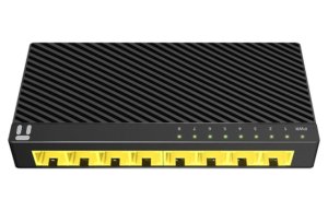 Ubiquiti UISP Switch; UISP Switch je osazen osmi GbE PoE RJ-45 a jedním GbE SFP slotem pro uplink.
