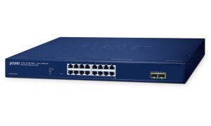 PLANET GS-2210-16T2S; Spravovatelný switch nabízející 16 portů 10/100/1000 Base-T a 2 SFP sloty 100/1000 Base-X .