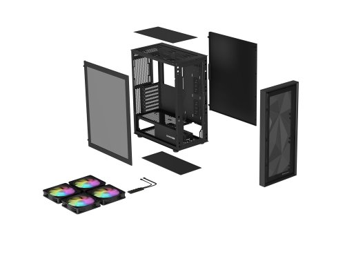 Typ skříně: Midi Tower Formát základní desky: ATX Micro-ATX Mini-ITX Kompatibilní standardní napájecí zdroj: ATX Montáž napájecího zdroje: Spodní část Maximální délka zdroje napájení: 215 mm Maximální výška chlazení CPU: 168 mm Maximální délka grafické karty GPU: 351 mm I/O panel: Mini jack x2 USB 3.0 Typ-A x2 USB 3.1 Gen2 Typ-C x1 Typ bočního panelu: Tvrzené sklo Typ předního panelu: Síťka Počet instalovaných ventilátorů: 4 Instalované ventilátory: Přední 3x 120 mm Zadní 1x 120 mm Maximální počet ventilátorů: 8 Podpora pro instalaci ventilátorů - spodní část: 2x 120 mm Podpora pro instalaci ventilátorů - horní část: 2x 120 mm 2x 140 mm Podpěra pro instalaci ventilátorů - přední strana: 3x 120 mm 3x 140 mm Podpora pro instalaci ventilátorů - zadní část: 1x 120 mm Rychlost otáčení ventilátorů +/-10 %: 1200 otáček za minutu Životnost ventilátoru: 50000 h Průtok vzduchu ventilátorem: 43 CFM Statický tlak ventilátoru: 0,95 mmH2O Hlučnost ventilátoru: 21,6 dB Podpora kapalinového chlazení: Ano Podpora instalace kapalinového chlazení - horní část: 120 mm 140 mm 240 mm 280 mm Podpěra pro instalaci kapalinového chlazení - přední část: 120 mm 140 mm 240 mm 280 mm 360 mm 420 mm Podpěra pro instalaci kapalinového chlazení - vzadu: 120 mm Podsvícení: ANO Barva podsvícení: ARGB Součásti podsvícení: Ventilátory Možnost ovládání RGB pomocí základní desky: 2+1 pin 5V ARGB Asrock Polychrome Sync 2+1 pin 5V ARGB Asus Aura Sync 2+1 pin 5V ARGB Gigabyte RGB Fusion 2.0 MSI (Mystic Light and others compatible) Počet rozšiřujících slotů: 7 Počet pozic pro disky 2,5" (SSD/HDD): 3 Počet 3,5" pozic pro disky (SSD/HDD): 2 Kryt zdroje napájení: Ano Napájecí zdroj je součástí dodávky: Ne Ochrany: Magnetické prachové filtry Materiál: ABS, Ocel, Tvrzené sklo Barva: Černá Délka: 420 mm Šířka: 217 mm Výška: 466 mm Hmotnost: 7,1 kg Dodávané příslušenství: Uživatelská příručka Sada montážních prvků