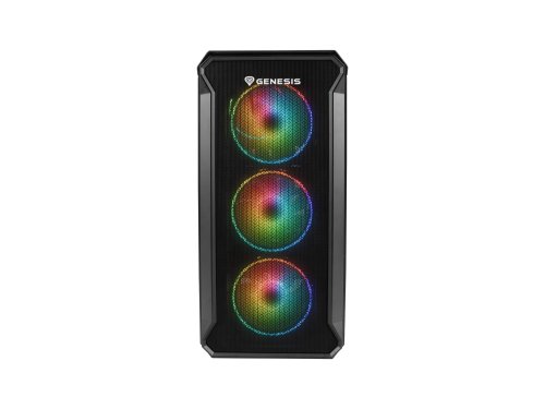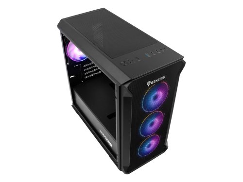 Irid 503 ARGB V2 je vybaven perforovanou přední stranou a boční panel je vyroben z čirého tvrzeného skla. Díky tomu je možné mít neustále přehled o pracovních komponentách. Skříň je vybavena 4 ventilátory Genesis Oxal ARGB 120, které se starají o vhodnou cirkulaci vzduchu.