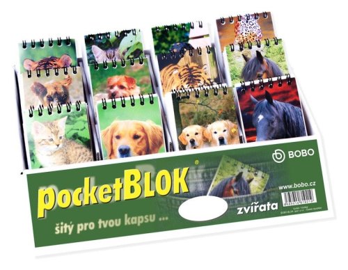 Mini bloky se skvěle hodí na zaznamenání okamžitých nápadů, básniček nebo obrázků. br brKapesní bločky s motivy zvířat jsou svázány do kovové spirály. Předností tohoto bloku je mini rozměr 55 x 85 mm. Tento bloček je možné nosit stále u sebe, aniž by vám překážel. br brKapesní blok br• Formát: 55 x 85 mm br• Počet listů: 30 br• Lineatura: čistá br• Vazba: Kroužková Twin Wire