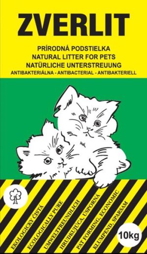 Zverlit hrubý bez vůně je kvalitní bentonitové hrudkující stelivo, které výborně pohlcuje pachy. Přírodní podestýlka je vyrobená sušením a tříděním bentonitu. Je určená pro suché toalety koček a ostatních malých zvířat chovaných v domácnosti. Je hygienicky nezávadná, ekologicky čistá, hrudkující a nealergizující. Vyšší hmotnost zamezuje roznášení podestýlky na tlapkách kočky po domácnosti. Velikost zrna (cca): 1–4 mm Použití: Do důkladně vyčištěné kočičí toalety nasypeme vrstvu podestýlky (5 cm). Po vykonání potřeby vznikne hrudka, která se po ztuhnutí a zahrabání kočkou vybere lopatkou.