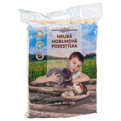 Velké hobliny z přírodního dřeva.Vysoká absorpční schopnosti. Je vhodná pro drobné hlodavce. Složení: Dřevěné hobliny