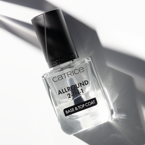Praktický lak na nehty, který kombinuje funkci podkladové i krycí vrstvy. Při použití jako podklad pomáhá vyhladit povrch nehtů, chrání je před zabarvením a zlepšuje přilnavost barevného laku. Jako vrchní lak dodává manikúře lesklý, transparentní finiš a pomáhá prodloužit její výdrž. Rychleschnoucí textura usnadňuje aplikaci a šetří čas při úpravě nehtů. Jeden produkt tak nabízí jednoduché řešení pro dokonale upravenou manikúru.Tento produkt pochází od značky uvedené v programu Beauty Without Bunnies organizace People for the Ethical Treatment of Animals (PETA), který sdružuje značky deklarující, že jejich produkty nejsou testovány na zvířatech.