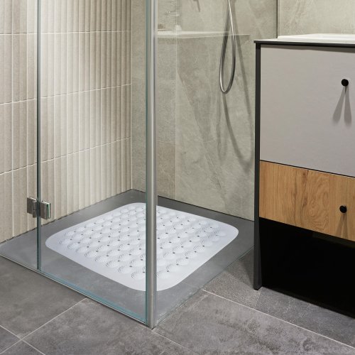 Podložka do sprchy 43,5 x 43,5 cm, gumová. rozměry: 43,5 x 43,5 cm matriál: PVC Protiskluzová podložka do vany, která zabrání náhodnému uklouznutí a pádu ve vaně nebo ve sprše.