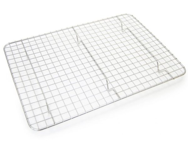 Kvalitní a současně pevný rošt na chazení cukroví vyrobený z nerezového drátu. Umožňuje dobré odpařování teplo z cukroví nebo pečiva. Užitečné také při zdobení dortů apod. Relativně jemné mřížkování usnadňuje manipulaci s drobným cukrovím. Snadno se čistí. Rozměr 37.5 x 25.5 x 2.5 cm. EAN 5902738210582