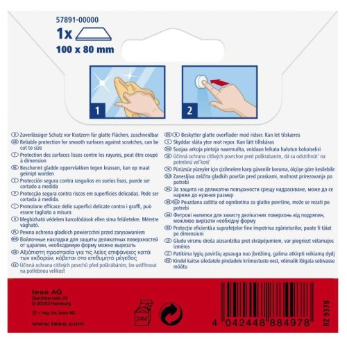 plstěná samolepicí podložka Tesa® Protect zabraňují poškrábání povrchů a snižují hluk obdelník k nastříhaní požadované velikosti materiál: filc barva: bílá rozměr: 100 mm x 80 mm obsah balení výrobku: …