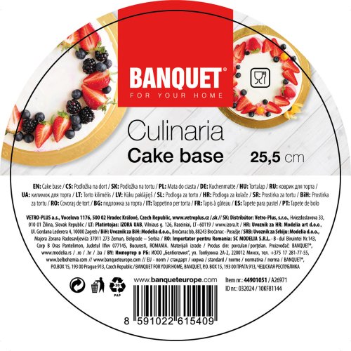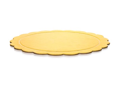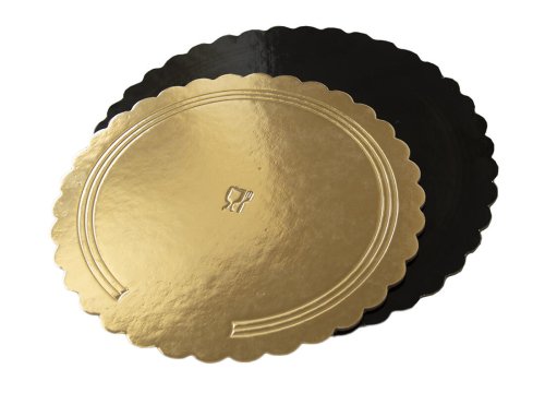 Kulatá podložka na dort CULINARIA. Podložka je vyrobena ze několikavrstvého 3 mm silného kartonu. Z obou stran je potažena zlatou fólií, která zaručuje voděodolnost a nepromastitelnost. Podložka pod dorty je ideální pracovní tácek, využijete ji při práci s dortem, finálním dozdobení a také k přenášení dortu.