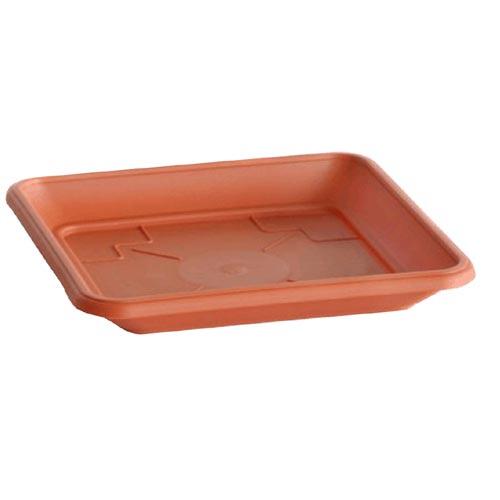 Plastová terakotově zbarvená v půdorysu kruhová miska pod květník TERRA. Rozměry misky: 21,5 x 21,5 x v. 2,5cm.