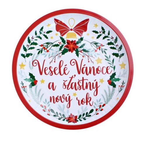 PODNOS KULATÝ VESELÉ VÁNOCE 26x2,5CM PLECH